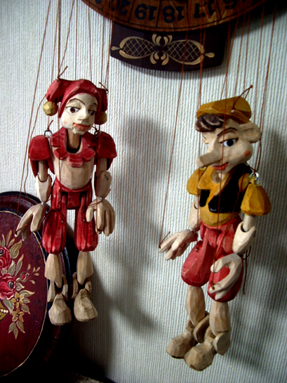 その変わり木彫りのアルルカン操り人形をおみやげに