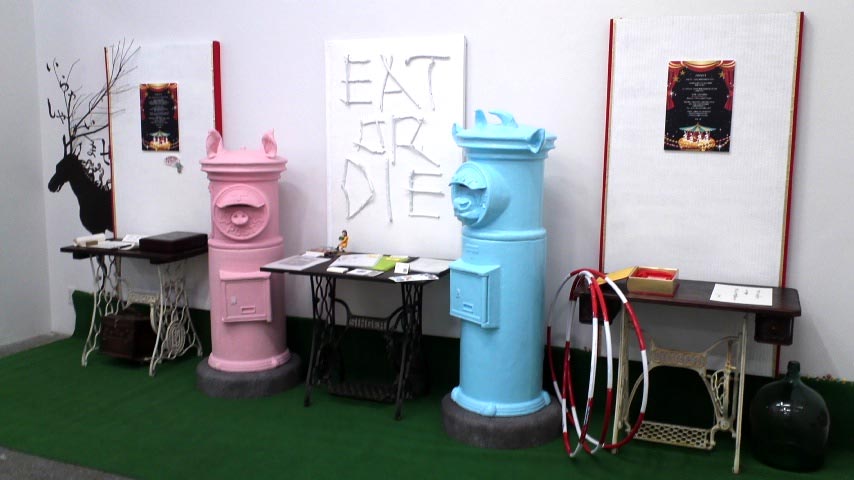 実は搬入の日まで、お互いがどんな作品持ち寄るか 一切打ち合わせしていませんでした.