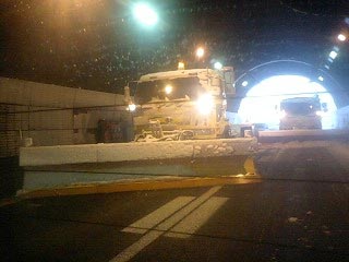 大雪注意報のでてる猛吹雪の京都への高速で、